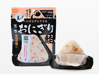 アルファ米のごはんシリーズには、白米をはじめ、わかめごはんや山菜おこわなどの和風、ドライカレーなどの洋風味、またおかゆをご用意。ビリヤニなどのエスニックシリーズもございます。四種の味わいのおにぎりシリーズもご好評いただいております。