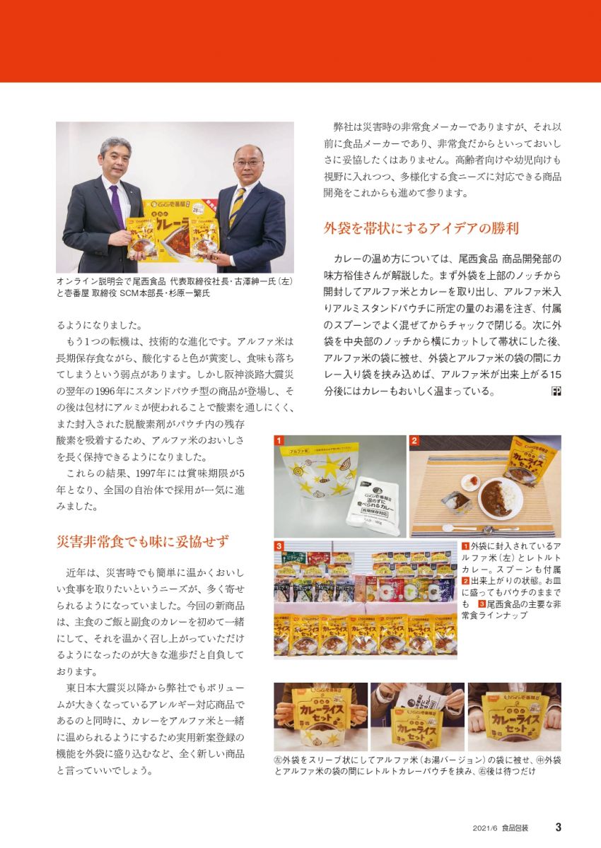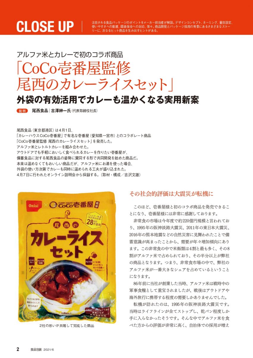 食品包装6月号にて「CoCo壱番屋監修 尾西のカレーライスセット」が紹介されました