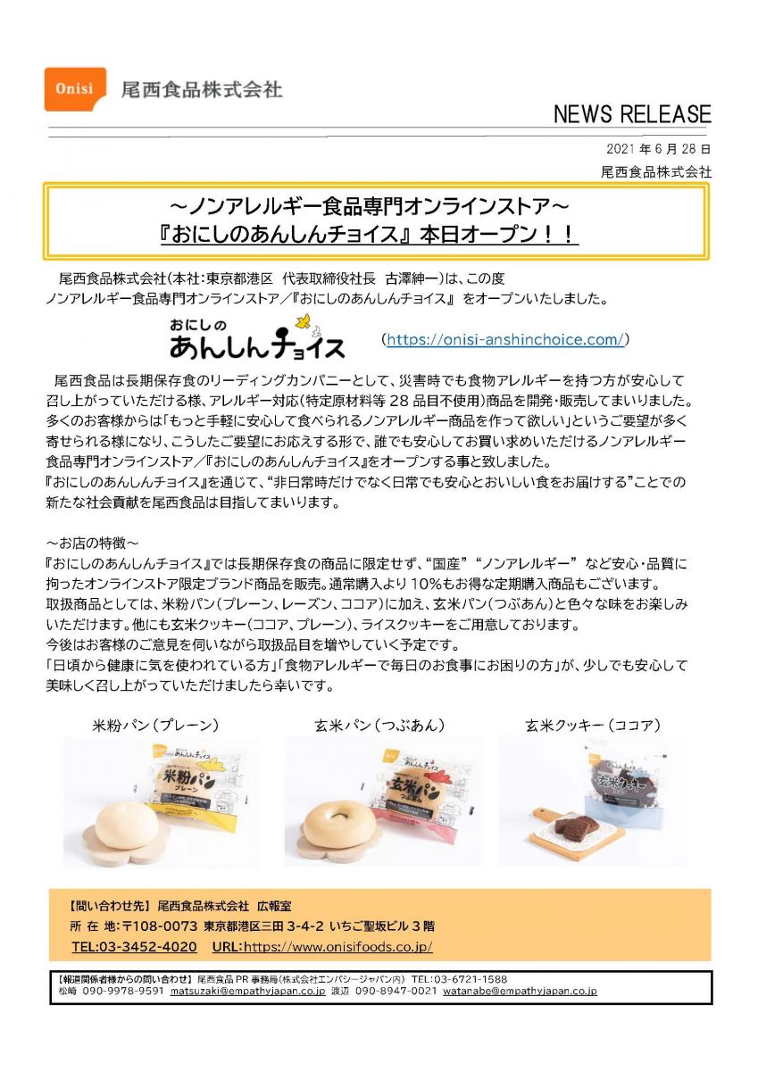 『おにしのあんしんチョイス』ノンアレルギー食品専門オンラインストア 本日オープン!