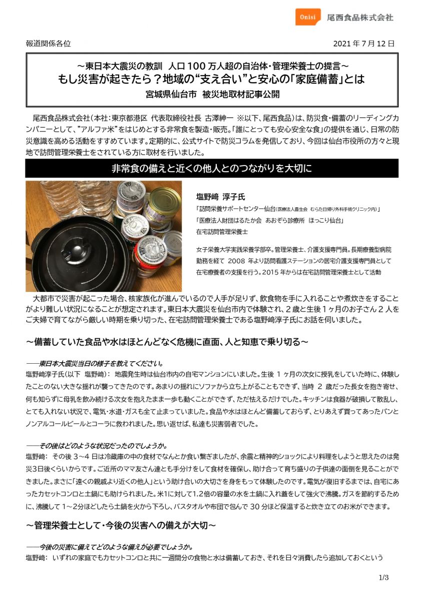 もし災害が起きたら?地域の“支え合い”と安心の「家庭備蓄」とは~東日本大震災の教訓 人口100万人超の自治体・管理栄養士の提言~