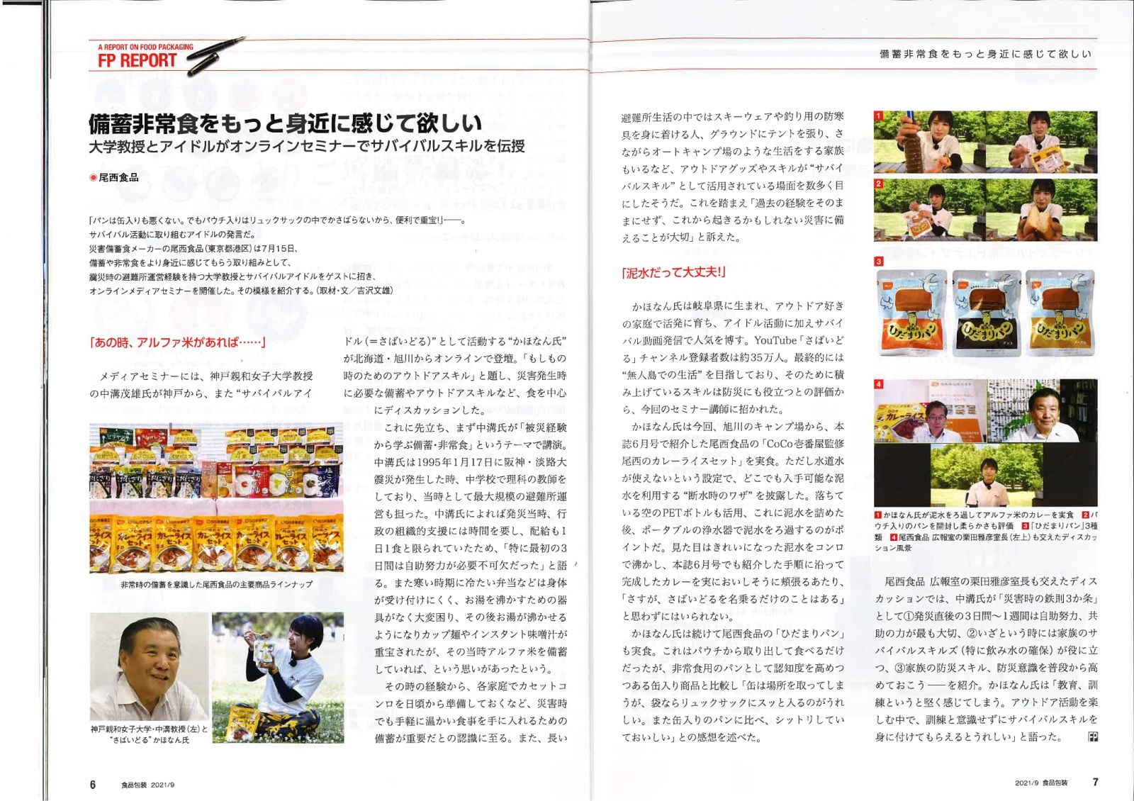 食品包装9月号にてメディアセミナー『大学教授とサバイバルアイドルが伝授する防災と非常食』が紹介されました