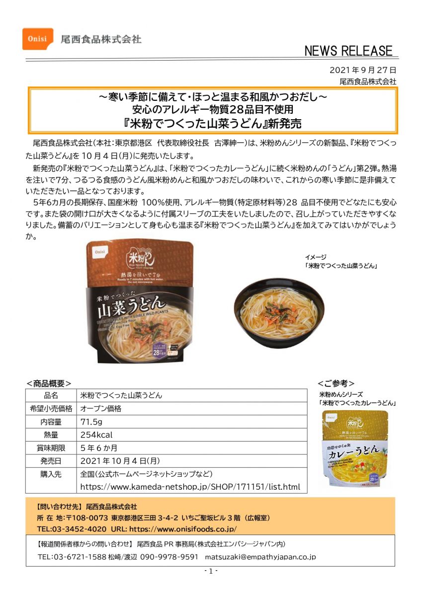 米粉めんシリーズ『米粉でつくった山菜うどん』が10月4日(月)に新発売!