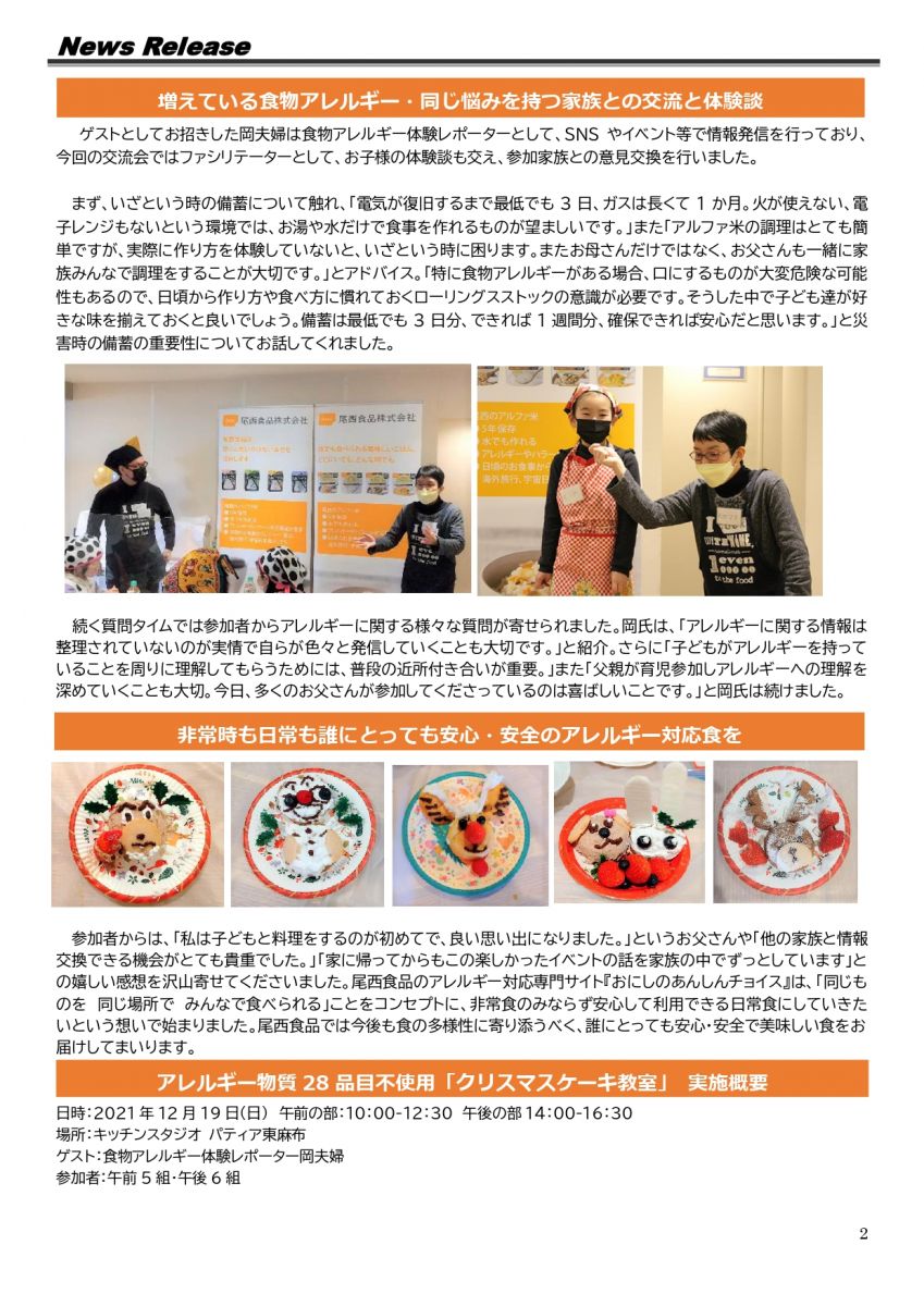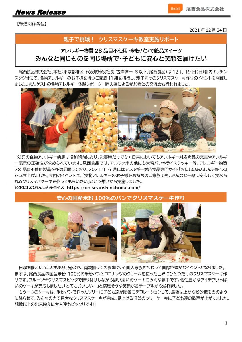 『親子で挑戦!クリスマスケーキ教室』実施リポートを公開しました ~アレルギー物質28品目不使用・米粉パンで絶品スイーツ~ みんなと同じものを同じ場所で・子どもに安心と笑顔を届けたい