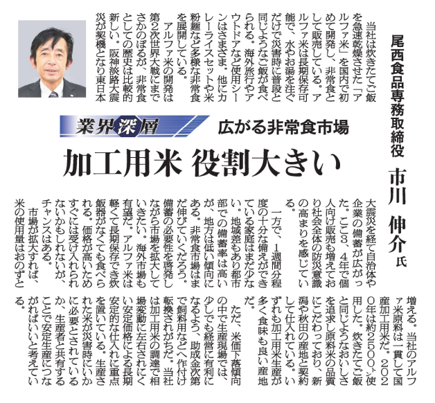 日本農業新聞から取材を受け、業界深層に市川専務の記事が出ました