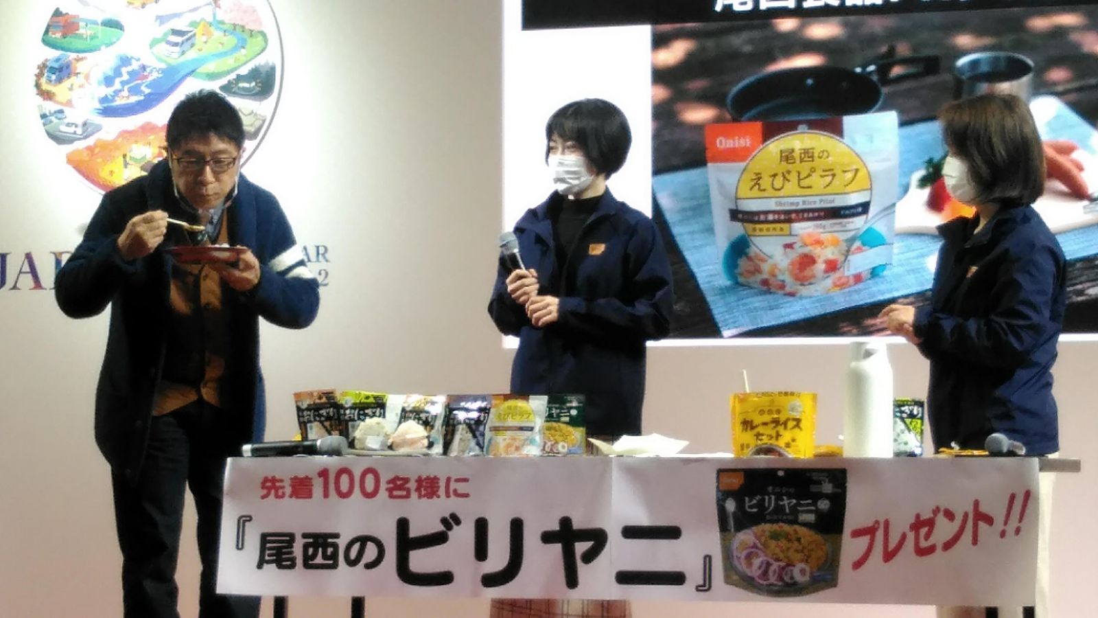 12日には、上手なアルファ米の作り方をご紹介するステージを辻よしなりさんのMCで実施。