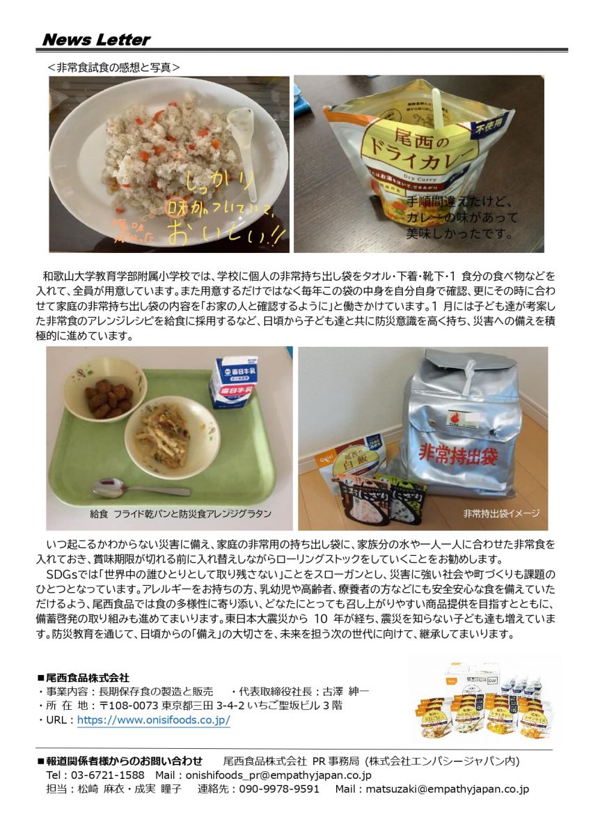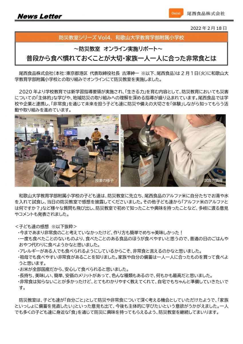 防災教室シリーズVol4.和歌山大学教育学部附属小学校 オンライン防災教室 実施リポート~普段から食べ慣れておくことが大切・家族一人一人に合った非常食とは~