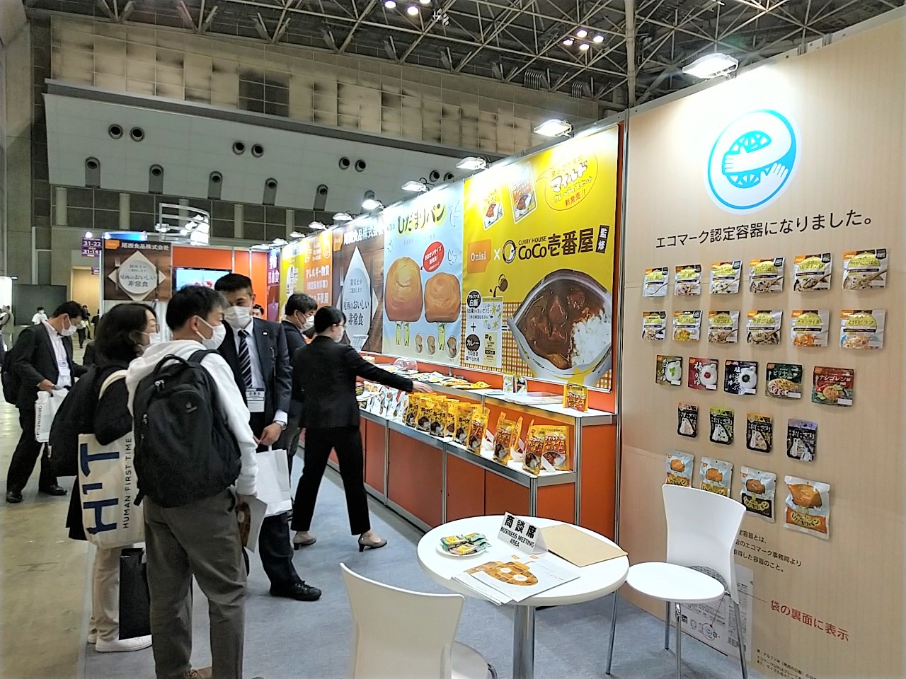 非常食で初となるエコマーク取得商品をはじめ当社の豊富な商品ラインナップから、防災士の資格を持つ社員が、災害時の備蓄について、詳しくご案内ご提案させていただきました。