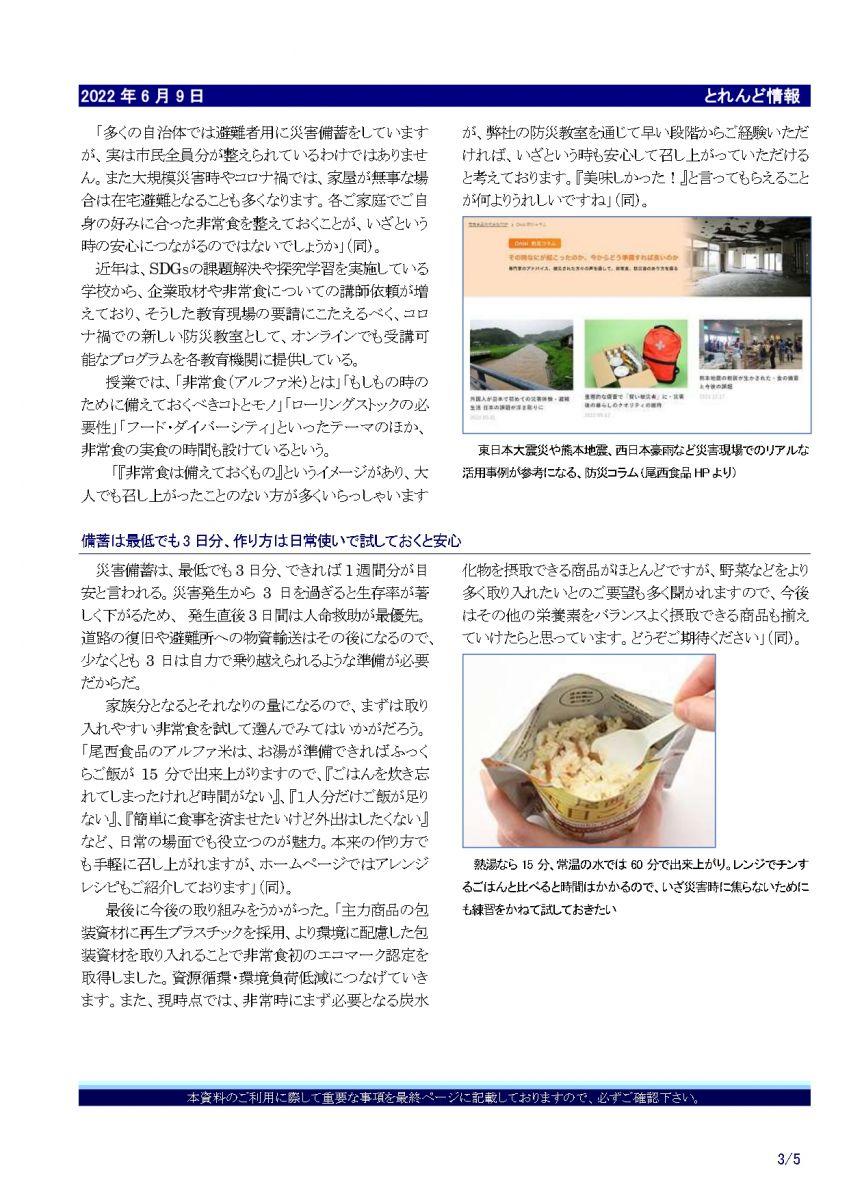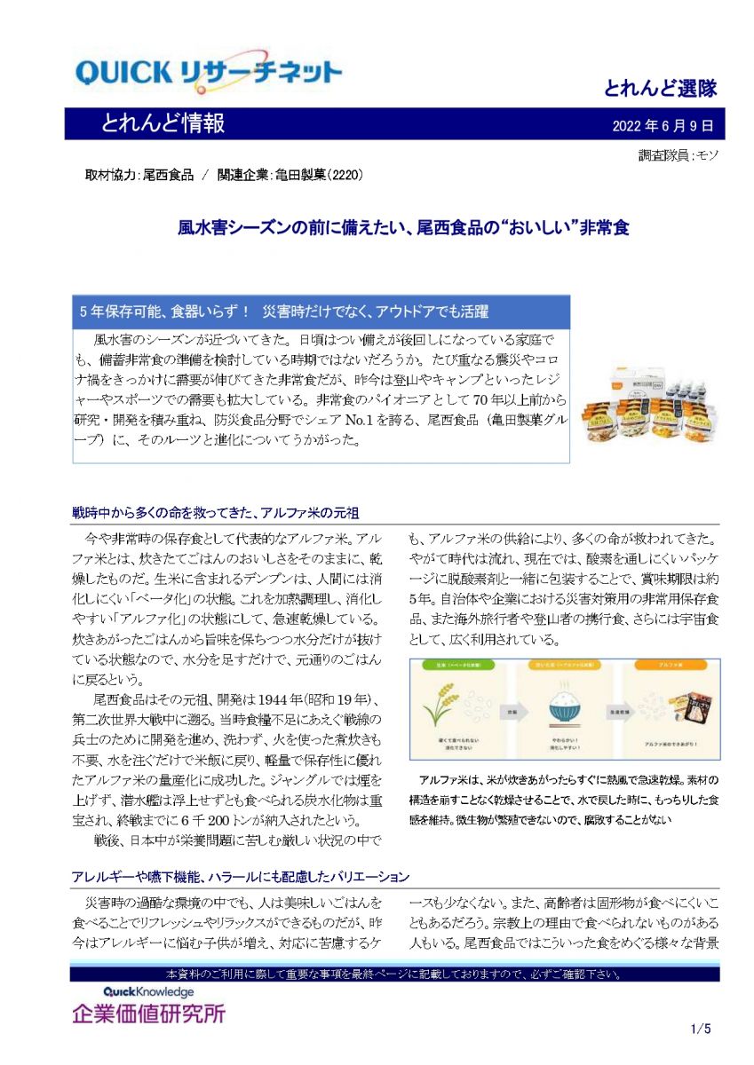 「QUICKリサーチネット」に尾西食品のアルファ米製品が掲載されました