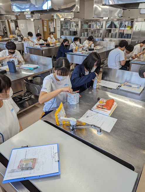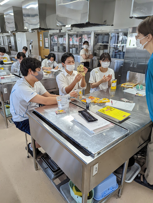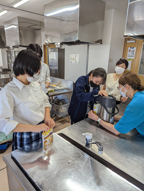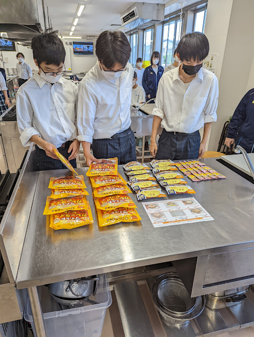 まず初めに生徒たちに「自宅に備蓄があるか」「なぜ非常食が必要か」などについて考えてもらい、非常食の必要 性や種類を説明。その後、動画でアルファ米の製造工程を学び、実際に作って食べてみる体験学習をしました。生徒 からは、「作り方が簡単だった」「非常食のイメージが変わった、美味しい」などの感想があり、実際に体験したことで 非常食の印象が変わったことがうかがえました。