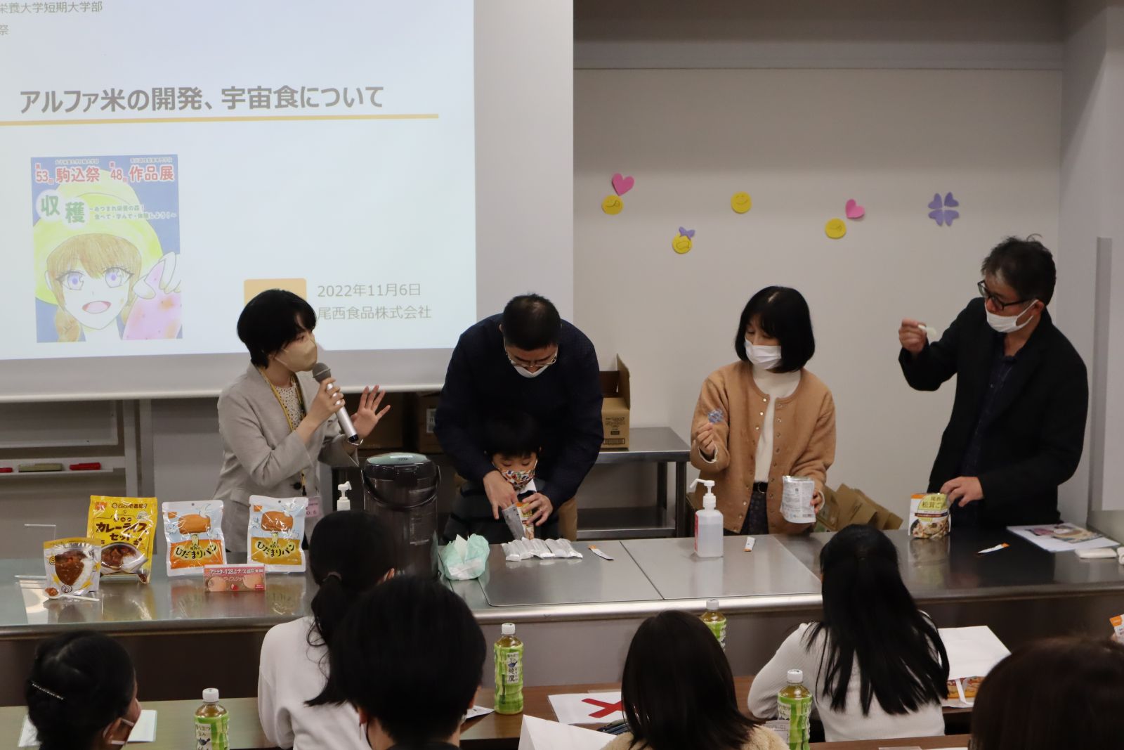 11月6日(日)、女子栄養大学短期学部の駒込キャンパスで開催された「第53回駒込祭・第48回作品展」にて、「アルファ米の開発・宇宙食について」のテーマで講演を行いました。