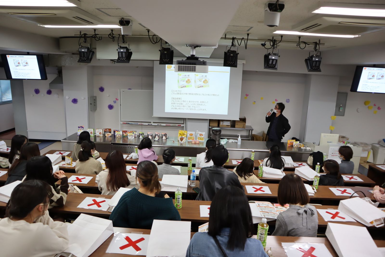 尾西食品は今年9月1日に女子栄養大学と産学連携包括協定を締結し、その活動の一環として、今回参加者の方に当社の取り組みについてご説明しました。