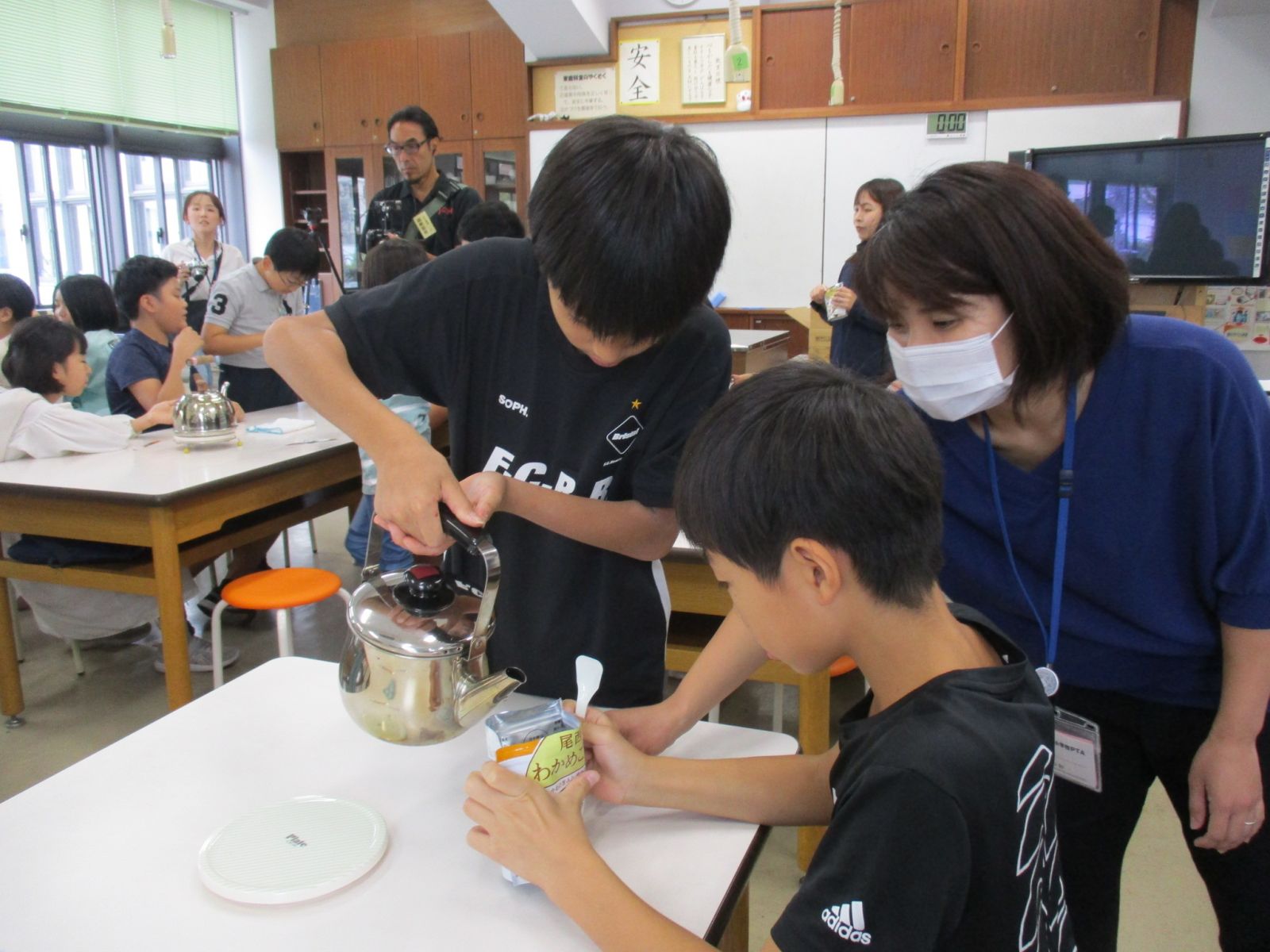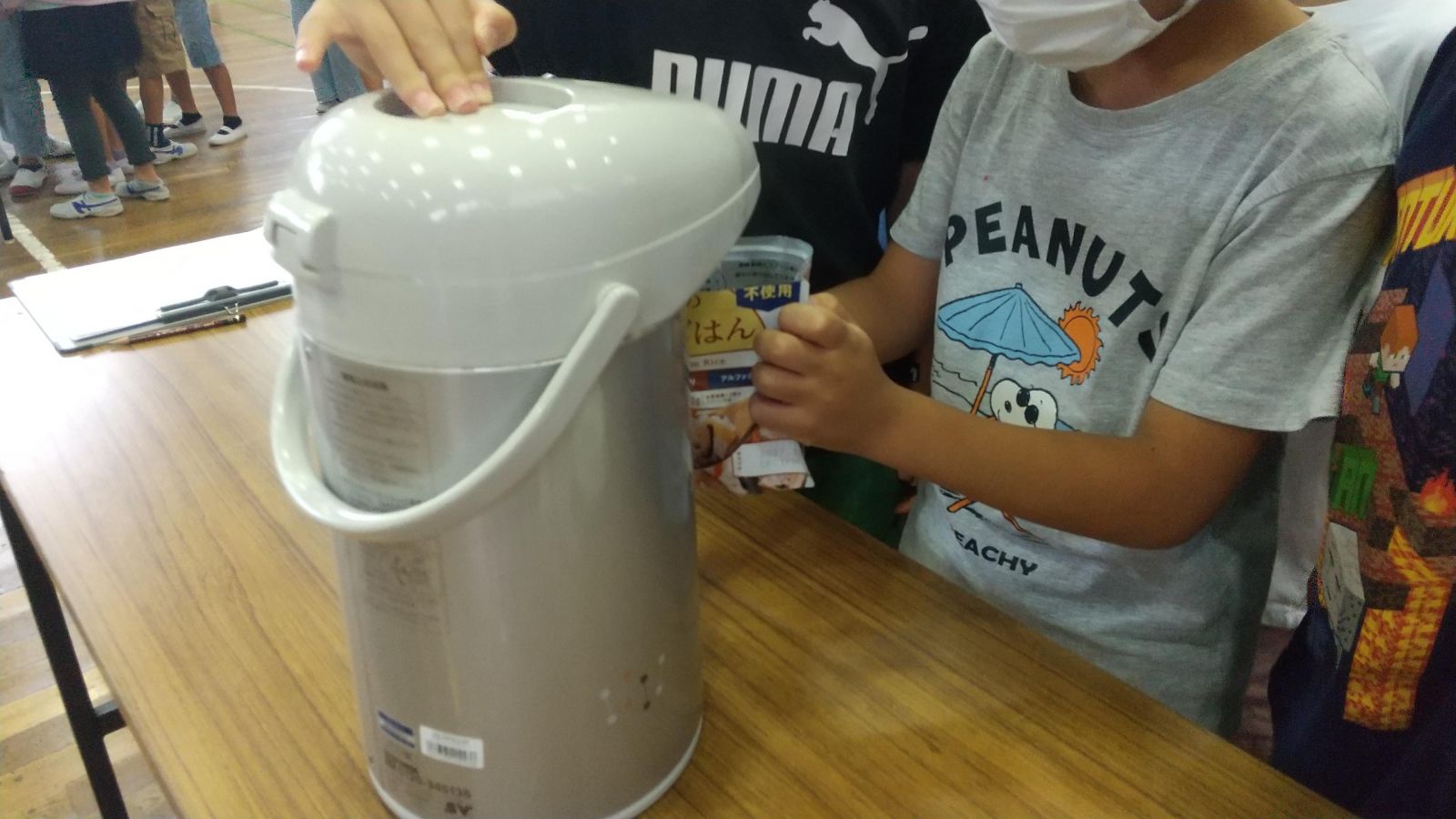 初めてアルファ米を作る児童も多かったようですが、お互いに教え合いながら、「お水をいれるとどんどんアルファ米が水分を吸ってる!」「美味しく出来上がるといいな」と楽しく取り組んでくれました。