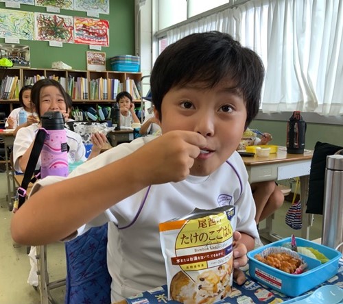その後、児童達には給食の時間に自分で作ったアルファ米を食べてもらい、様々な感想が寄せられました。