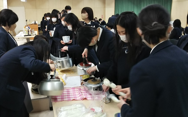 この度、3月13日(月)に、令和3年に開設した東京都立赤羽北桜高等学校(住所:東京都北区 ※以下、赤羽北桜高校)にて保育・栄養科の1年生69名を対象とした非常食についての防災教室を実施しました。