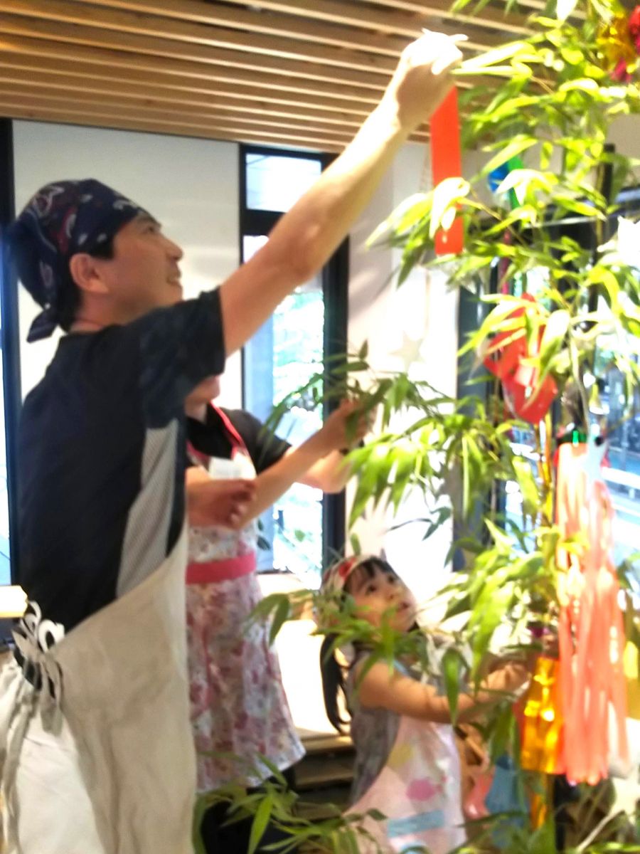 七夕らしく大きな笹も用意して、みんなで願いごとを短冊に書いて飾りました。楽しく季節を感じられるひとときとなりました。「まんがかになりたい」といった可愛らしい願い事も…。叶うことを願っています。