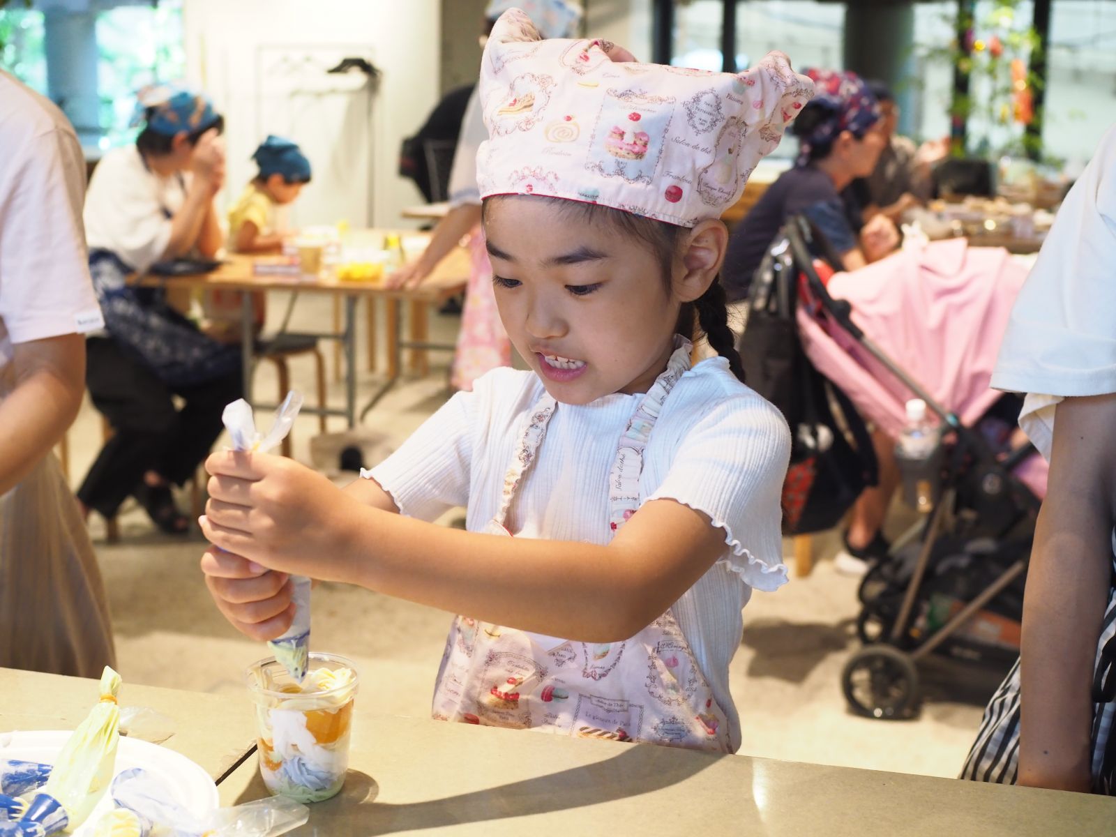 ご家庭でも作れるようなレシピで料理教室を実施した他、特別にたくさんの色のクリームを用意し、子どもたちはレインボーパフェ作りの体験をしました。見栄えもバッチリで美味しそうなパフェになり、大喜びです。