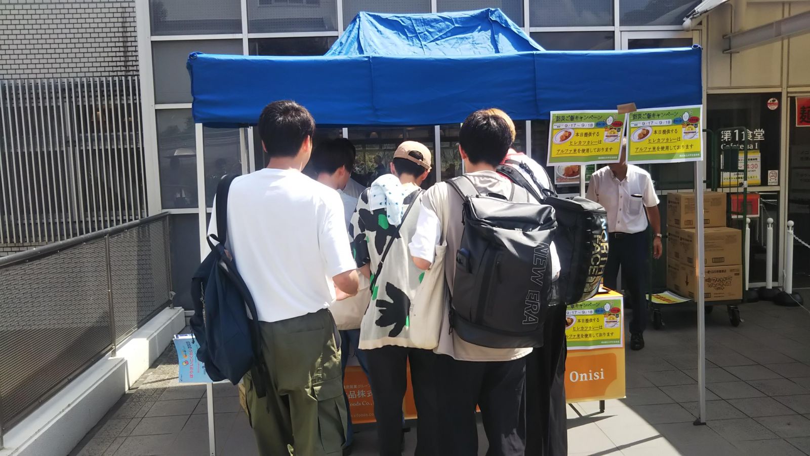 大学生協様のご協力をいただき実現したもので、用意したヒレカツカレー600食は好評で完売となりました