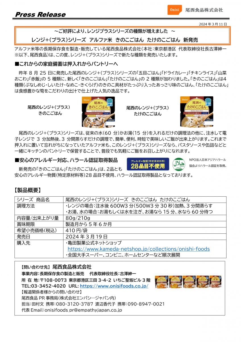尾西食品が