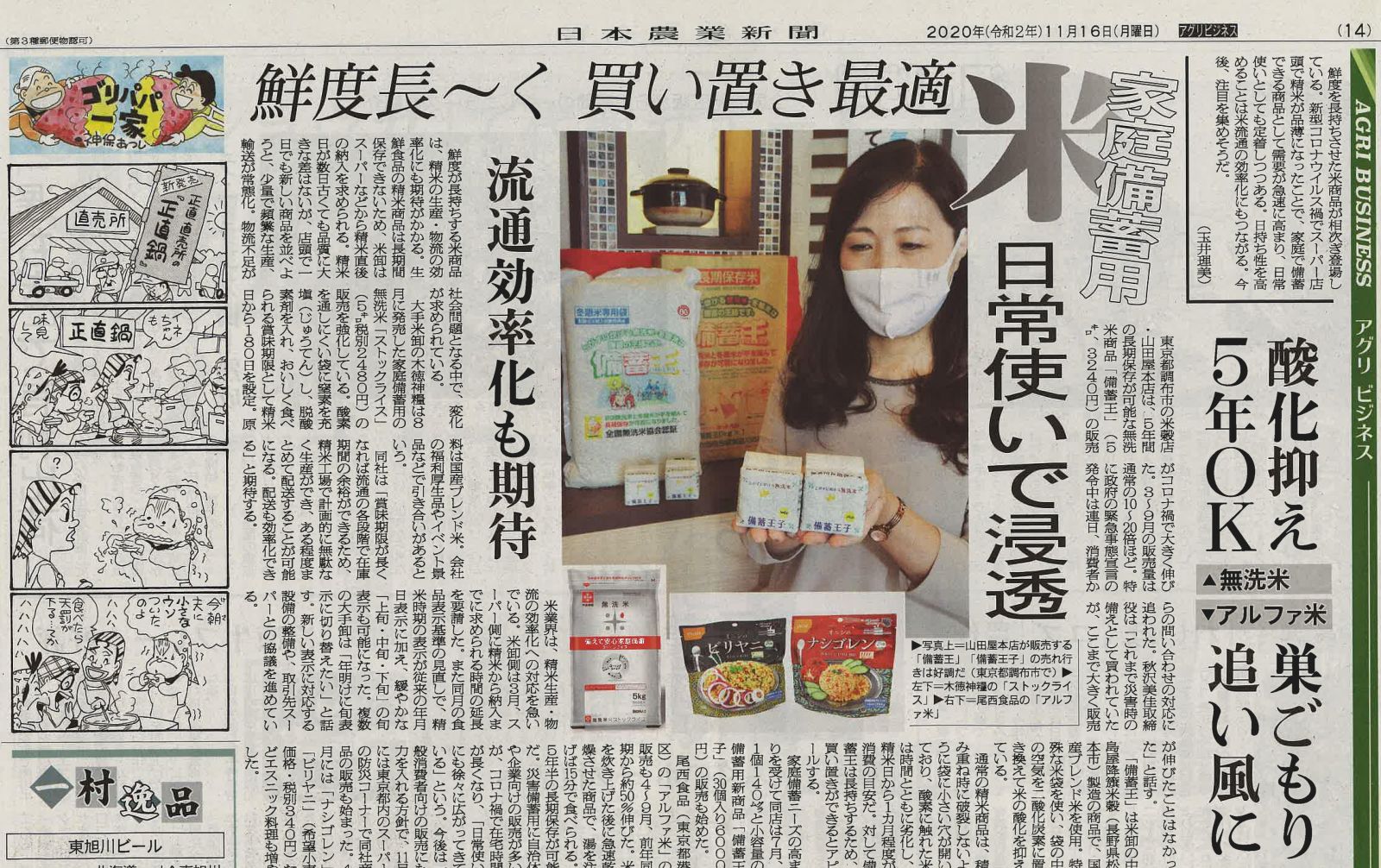 農業新聞社「家庭用備蓄」テーマでアルファ米の記事掲載!