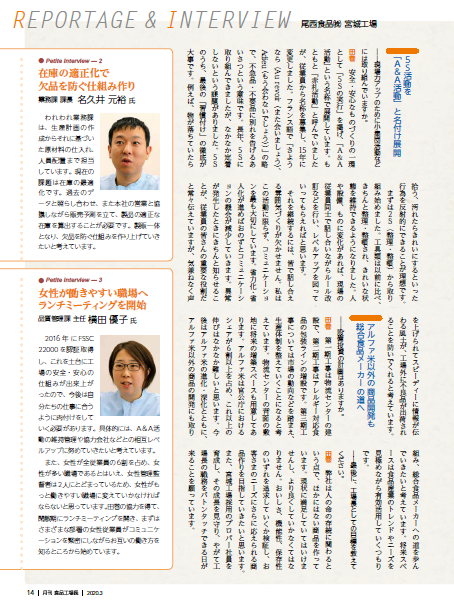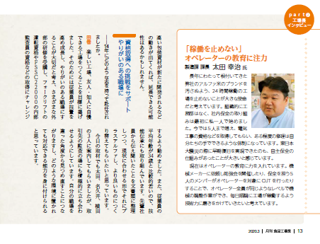 月刊食品工場長(2020年3月号No.275、日本食料新聞社)に