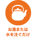 待つ出来上がりまで、お待ちください。※熱湯で15分、水(15℃)の場合60分を出来上がりの目安としてください。