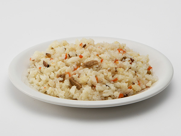 松茸・油揚げ・にんじん・ごぼう具材をかつおと昆布のだしで炊込んだ松茸の旨味と香が豊かなごはんです。 スプーン付きだから、何処ででもお召し上がりいただけます。 でき上がりの量は、お茶碗軽く2杯分、260g!