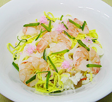 えびを縦半分に切り、背ワタを取り除き流水で洗います。えびを酒に5分程度つけておきます。鍋にお湯を沸かし、塩を加え溶かした中にえびを入れ、色が変わったら取出し冷ましておきます。