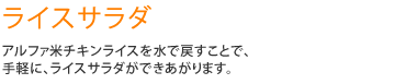 • アルファ米を水でもどすことで、パラッとしたライスサラダが出来上がります。
