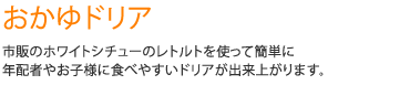 深めの容器にレトルトのシチューの素を開け、アルファ米(白がゆ)を加えてよくなじむように混ぜ合わせます。