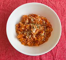 もう一度しっかりかき混ぜて、粉チーズ、コショウ、パセリをお好みで振りかけて、出来上がり。