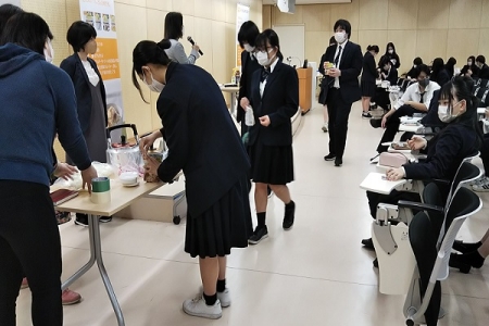 また今回の防災教室は「生活産業基礎」という職業について学ぶ科目中での取り組みであり、生徒たちからは食に関する会社で働く理由やどのような想いがあるのかという質問も多くあがり、仕事への具体的なイメージをもった様子でした。