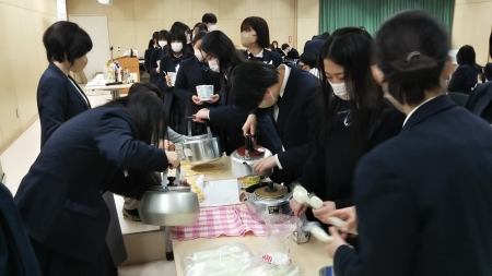 赤羽北桜高校では、令和3年に開設した保育・栄養科の1年生69名を対象とした非常食についての防災教室を実施しました。