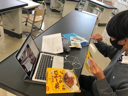 関⻄⼤学⾼等部では学⽣の⾃⽴⼒や社会⼒などの育成のため、企業や地域社会と連携した探究学習を⾏っており、今回はその⼀環として、⾼等部1年⽣プロジェクト基礎・危機管理ゼミ(担当:⼩藤佳⼦先⽣)の5名がコロナ禍での防災や感染対策、防災⾷などについてグループ研究を実施。尾⻄⾷品の理念やアルファ⽶の商品開発、SDGs取り組み等について、尾⻄⾷品広報室が説明し、⾼校⽣チームと意⾒交換を⾏いました。アルファ⽶の⾮常⾷の作り⽅講座では、広報室が商品の作り⽅をレクチャー。アルファ⽶をおいしく召し上がって頂くためのポイントを伝授、実際に⾼校⽣に試⾷して頂くこととなりました。⾼校⽣たちは各⾃サンプルの中から好きな商品を選び、アルファ⽶やおにぎり、カレーライスセットやパンなどを⼿に、説明を熱⼼に聞いていました。