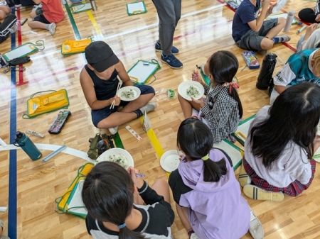 社家小学校の4年生を対象とした非常食や備えや大切さについて学ぶ防災教室を実施しました。 実施日:10月9日(木) 学年:4年生 人数:87名 科目:総合的な学習の時間 形式:対面