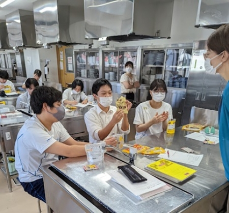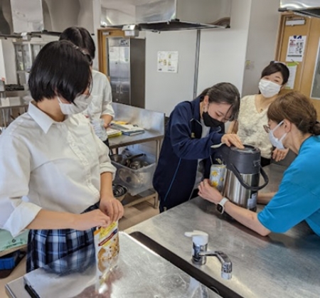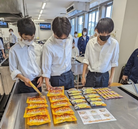 まず初めに生徒たちに「自宅に備蓄があるか」「なぜ非常食が必要か」などについて考えてもらい、非常食の必要性や種類を説明。その後、動画でアルファ米の製造工程を学び、実際に作って食べてみる体験学習をしました。生徒からは、「作り方が簡単だった」「非常食のイメージが変わった、美味しい」などの感想があり、実際に体験したことで 非常食の印象が変わったことがうかがえました。